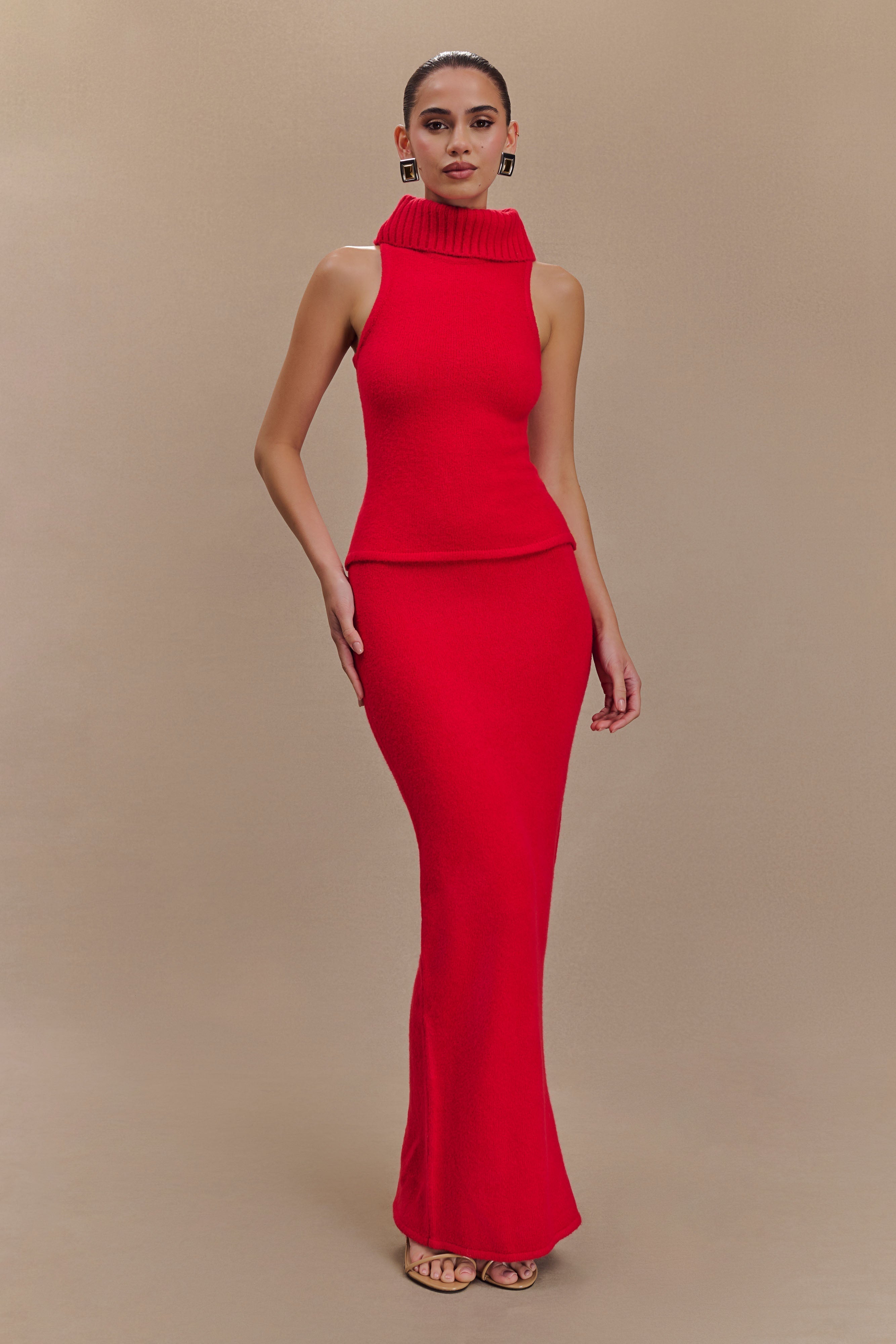 Introducing the Elise Roll Neck Knit Top, a stylish essential that effortlessly elevates any ensemble. Featuring a sophisticated fold-over high neck, this sleeveless top offers a modern silhouette perfect for layering or wearing on its own. The longline design creates a flattering shape that pairs beautifully with tailored pants or your favourite skirts. Unlined for a lightweight feel, this top is crafted for ultimate comfort, making it ideal for both casual and dressy occasions. For a cohesive look, pair it with the Elise Knit Maxi Skirt, embodying effortless elegance and timeless style.